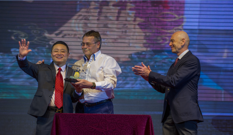 親愛的曹總,請接受這艘金燦燦的海匯之帆,祝海匯和wendler合資十周年快樂!